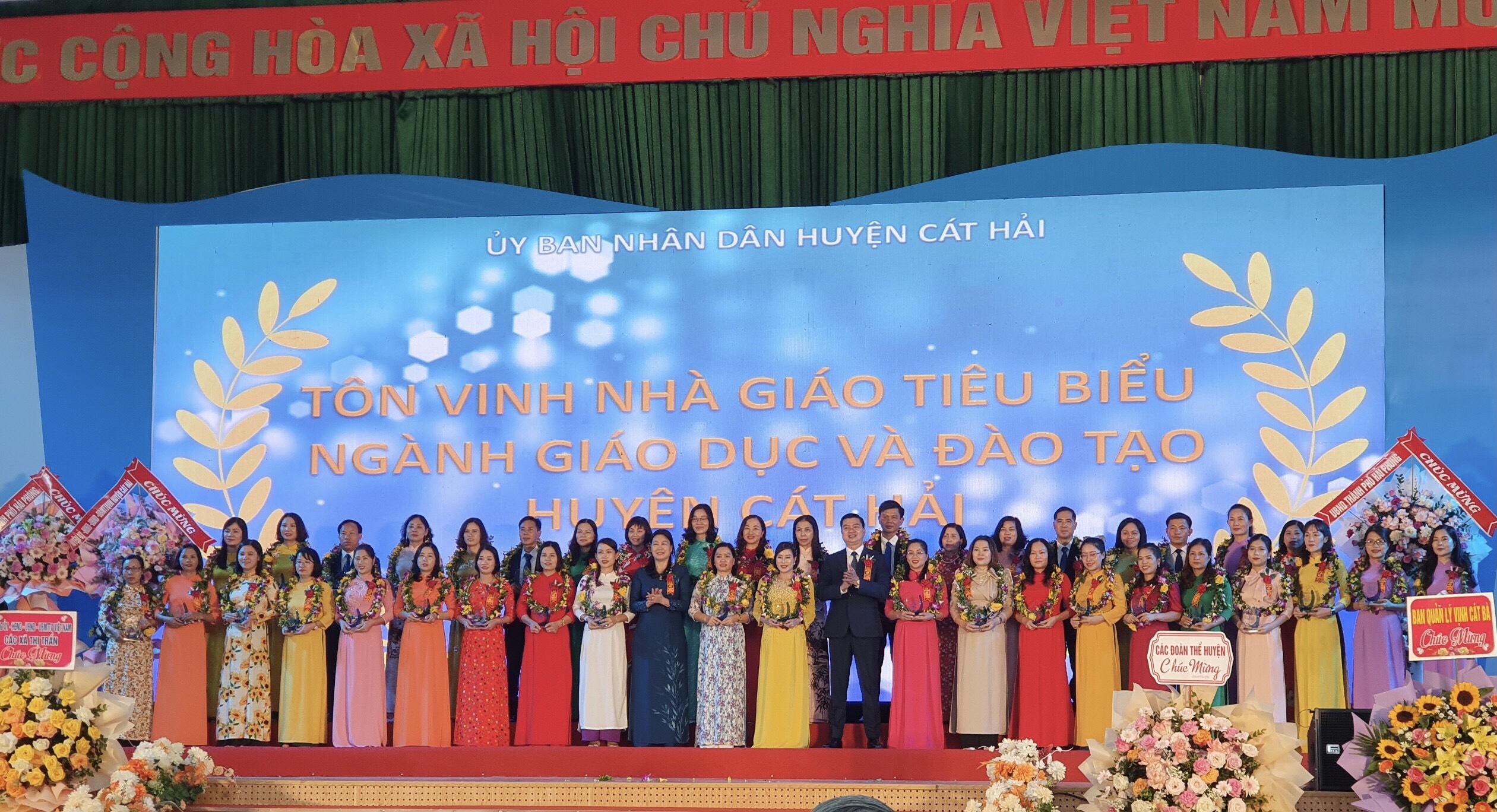 Nhằm tri ân những đóng góp của các thầy cô giáo trong sự nghiệp trồng người. Sáng 11/11/2022 Huyện ủy- HĐND- UBND- UBMTTQ Việt Nam Huyện Cát Hải long trọng tổ chức lễ kỷ niệm tôn vinh các thầy cô giáo. Nhà trường rất vinh dự có cô Hoàng Thị Hoàng Anh - Phó Hiệu trưởng được nhận Bằng khen của thành phố và vinh danh nhà giáo tiêu biểu trong số 40 nhà giáo tiêu biểu của ngành giáo dục đào tạo huyện Cát Hải