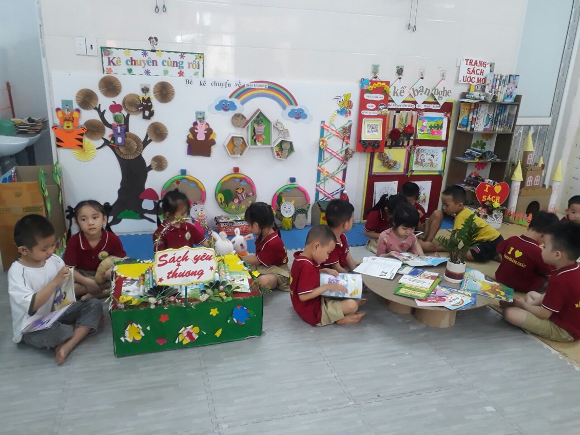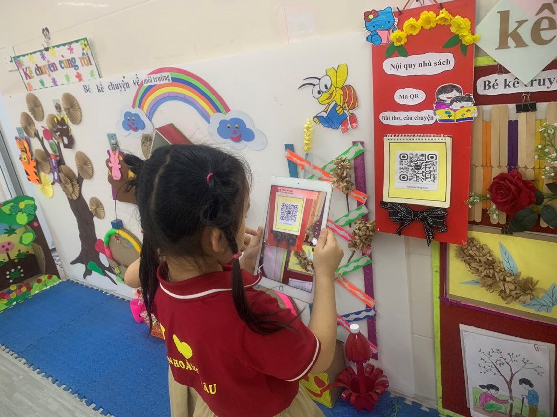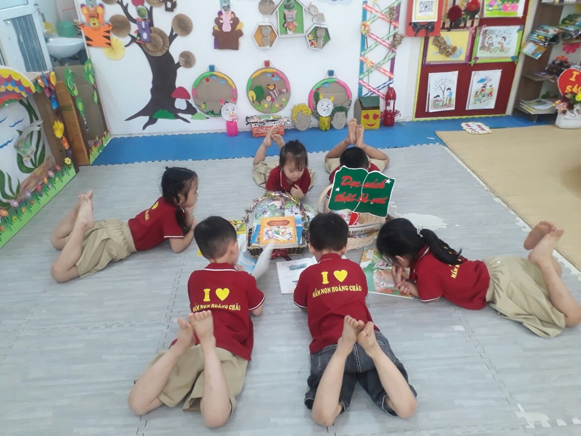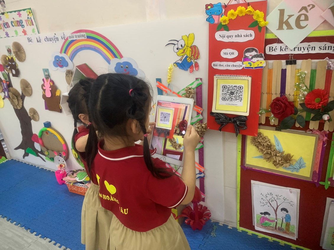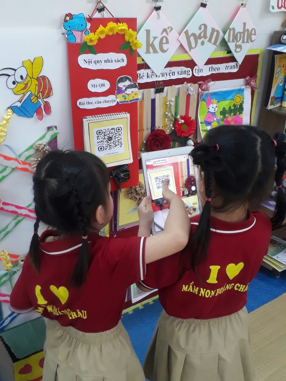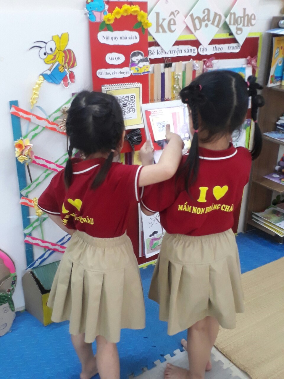 Nhận thức được tầm quan trọng đó trường Mầm non Hoàng Châu đã thực hiện những hoạt động nhằm khuyến khích và phát triển phong trào đọc sách cho trẻ. Thay đổi hình thức đọc sách bằng việc cho trẻ quét mã QR để cùng tìm kiếm các câu chuyện và bài thơ qua đường link nâng cao chất lượng thực hiện chuyển đổi trong công tác chăm sóc, giáo dục trẻ