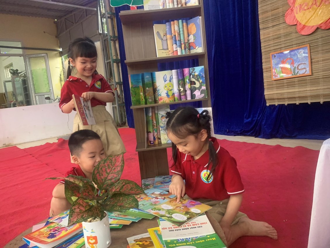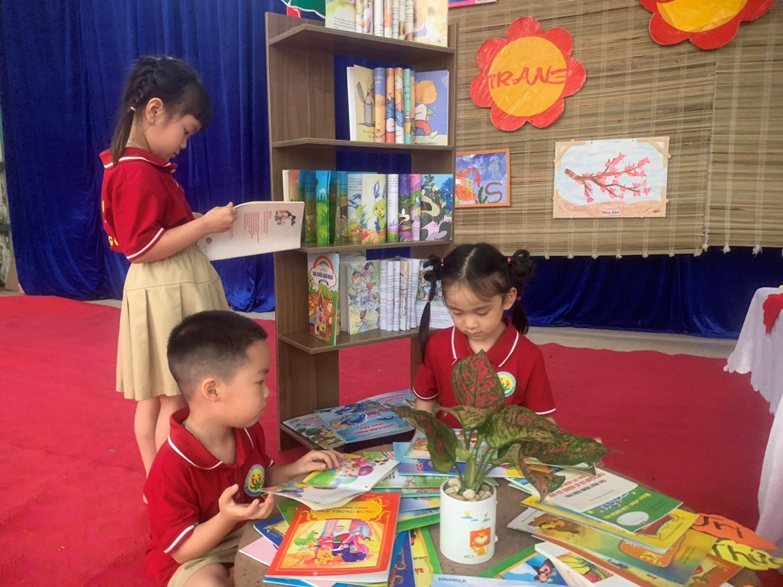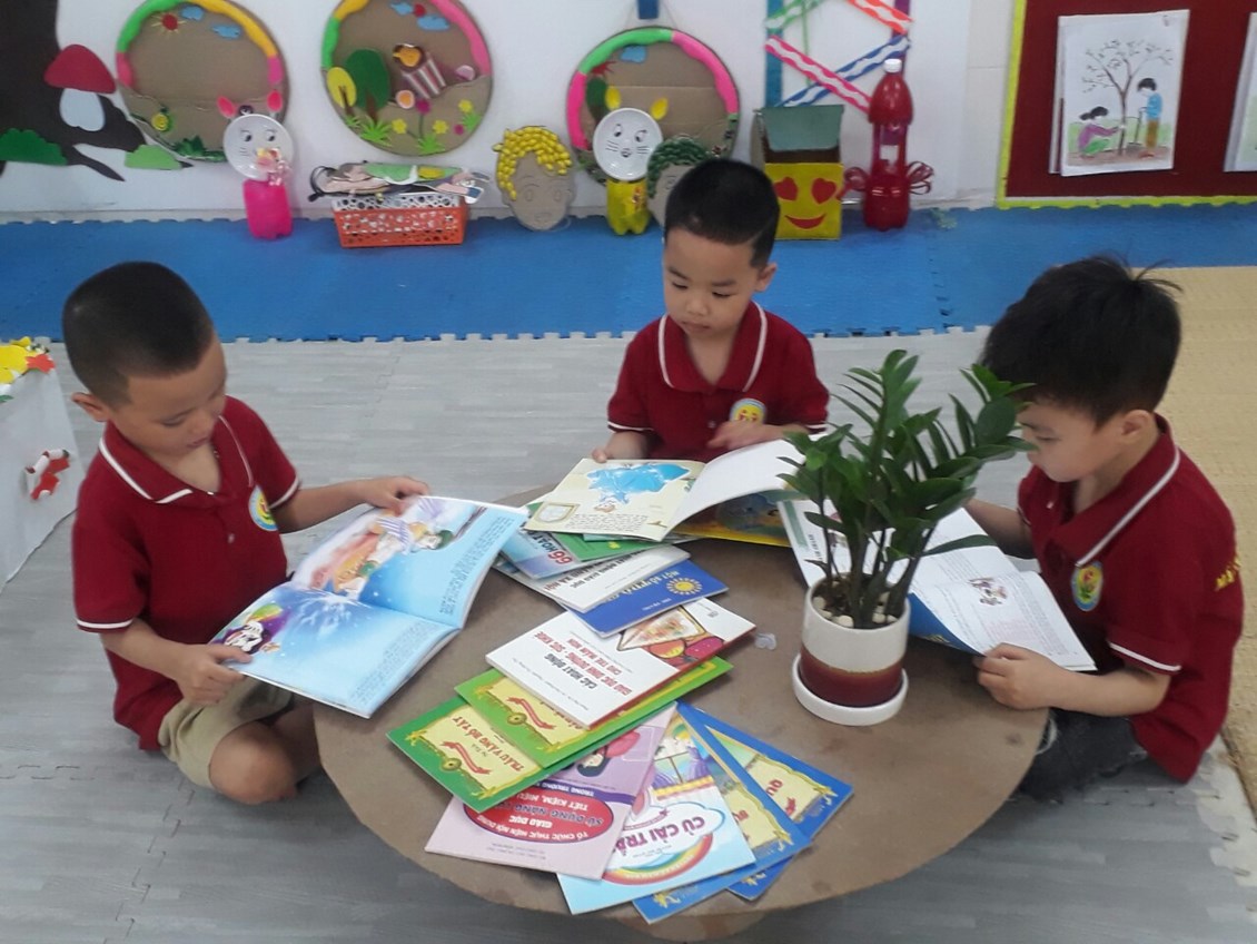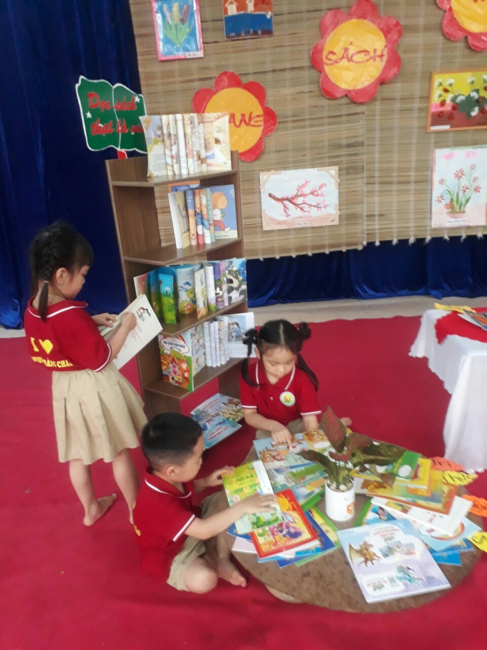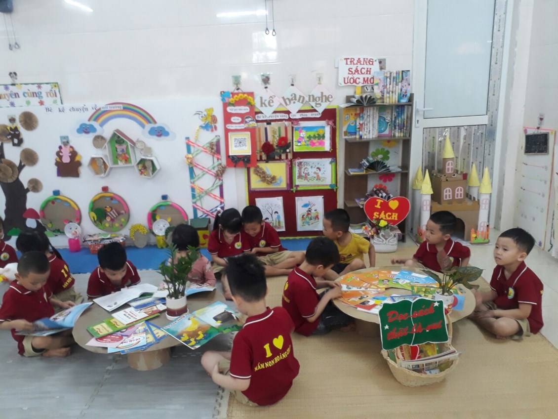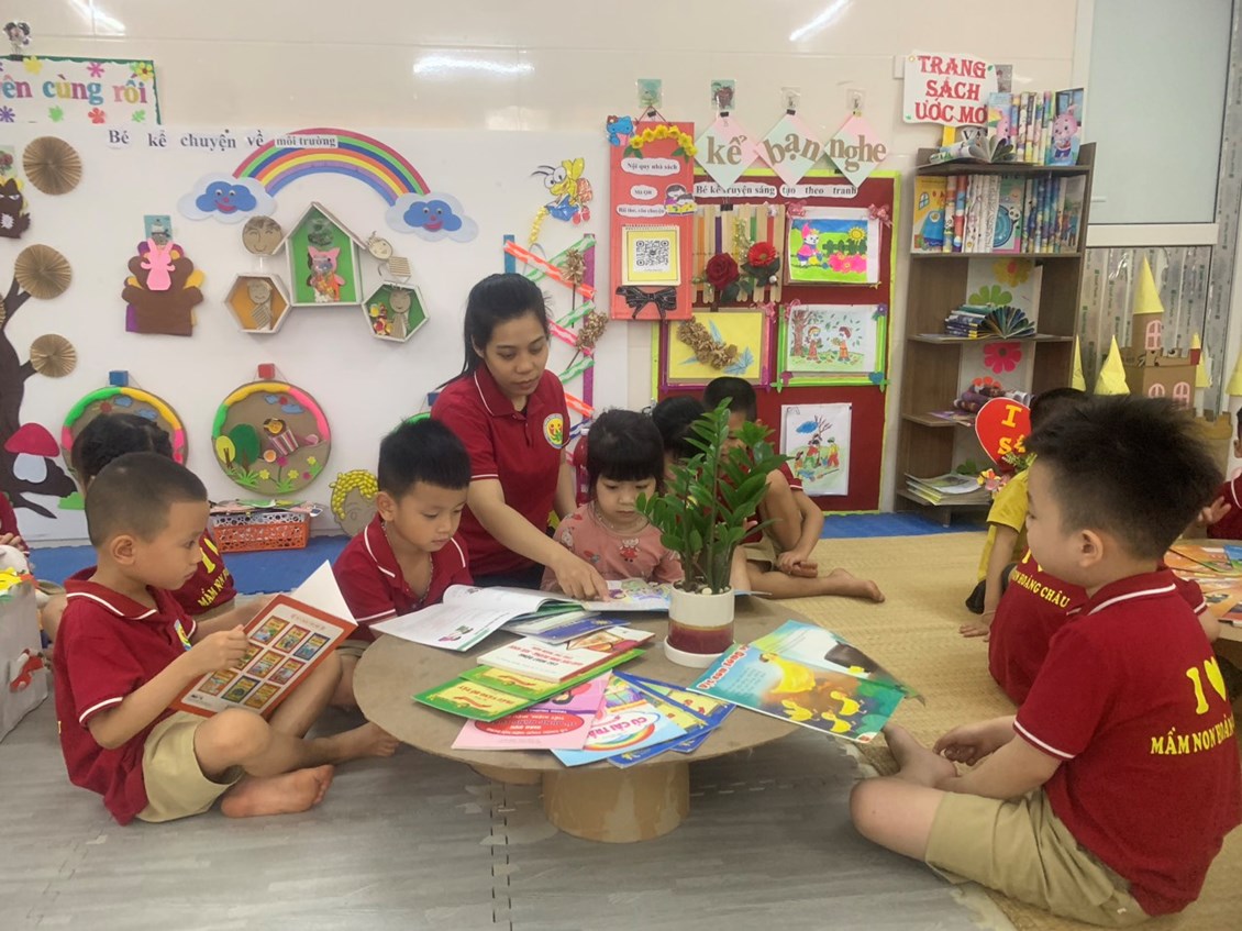 Nhận thức được tầm quan trọng đó trường Mầm non Hoàng Châu đã thực hiện những hoạt động nhằm khuyến khích và phát triển phong trào đọc sách cho trẻ. Thay đổi hình thức đọc sách bằng việc cho trẻ quét mã QR để cùng tìm kiếm các câu chuyện và bài thơ qua đường link nâng cao chất lượng thực hiện chuyển đổi trong công tác chăm sóc, giáo dục trẻ