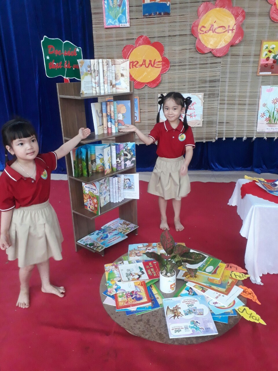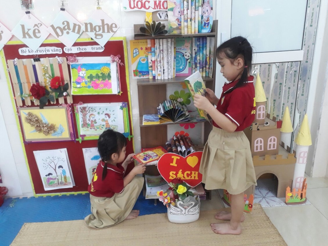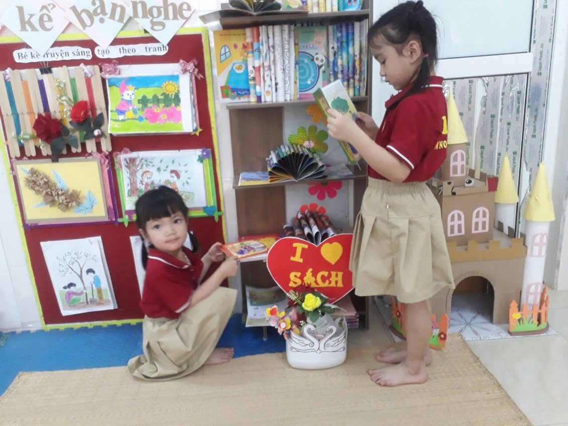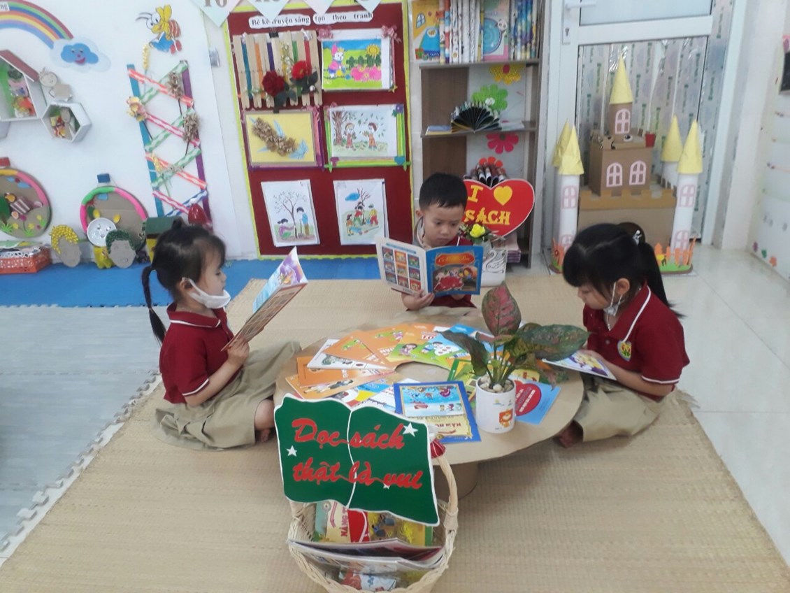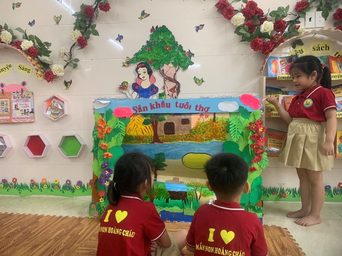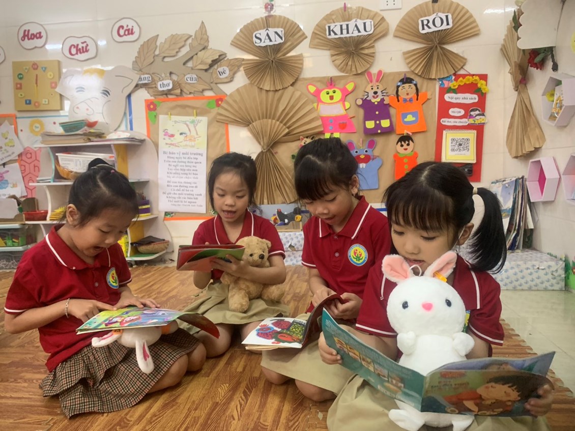 Nhận thức được tầm quan trọng đó trường Mầm non Hoàng Châu đã thực hiện những hoạt động nhằm khuyến khích và phát triển phong trào đọc sách cho trẻ. Thay đổi hình thức đọc sách bằng việc cho trẻ quét mã QR để cùng tìm kiếm các câu chuyện và bài thơ qua đường link nâng cao chất lượng thực hiện chuyển đổi trong công tác chăm sóc, giáo dục trẻ
