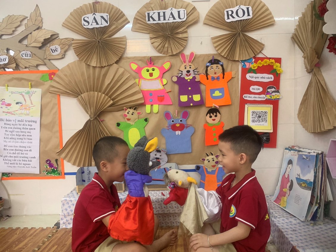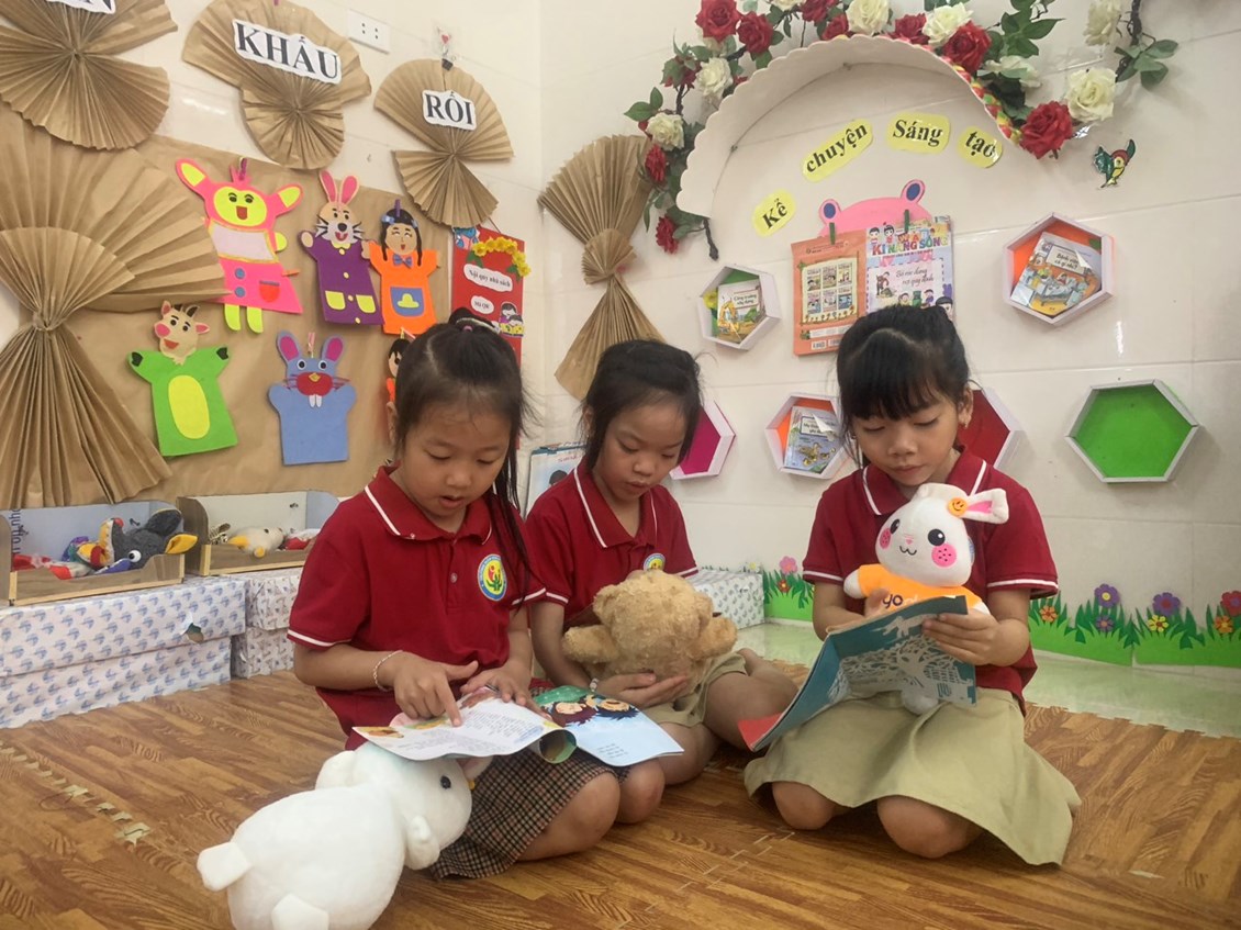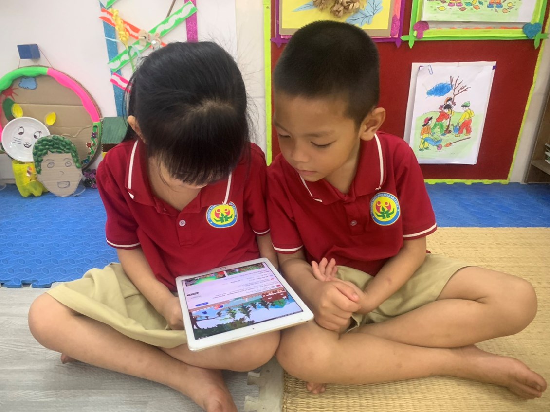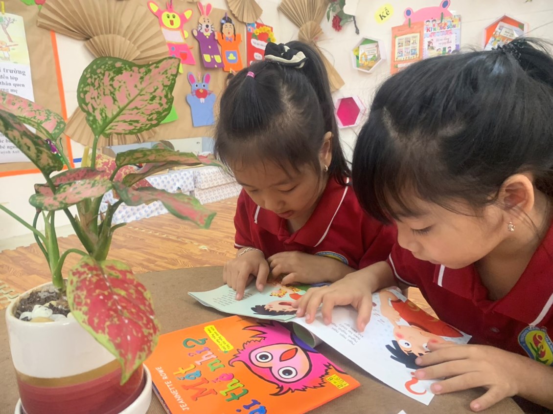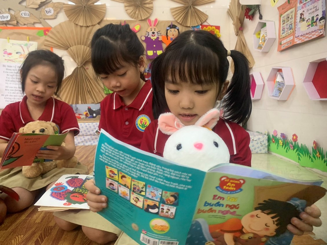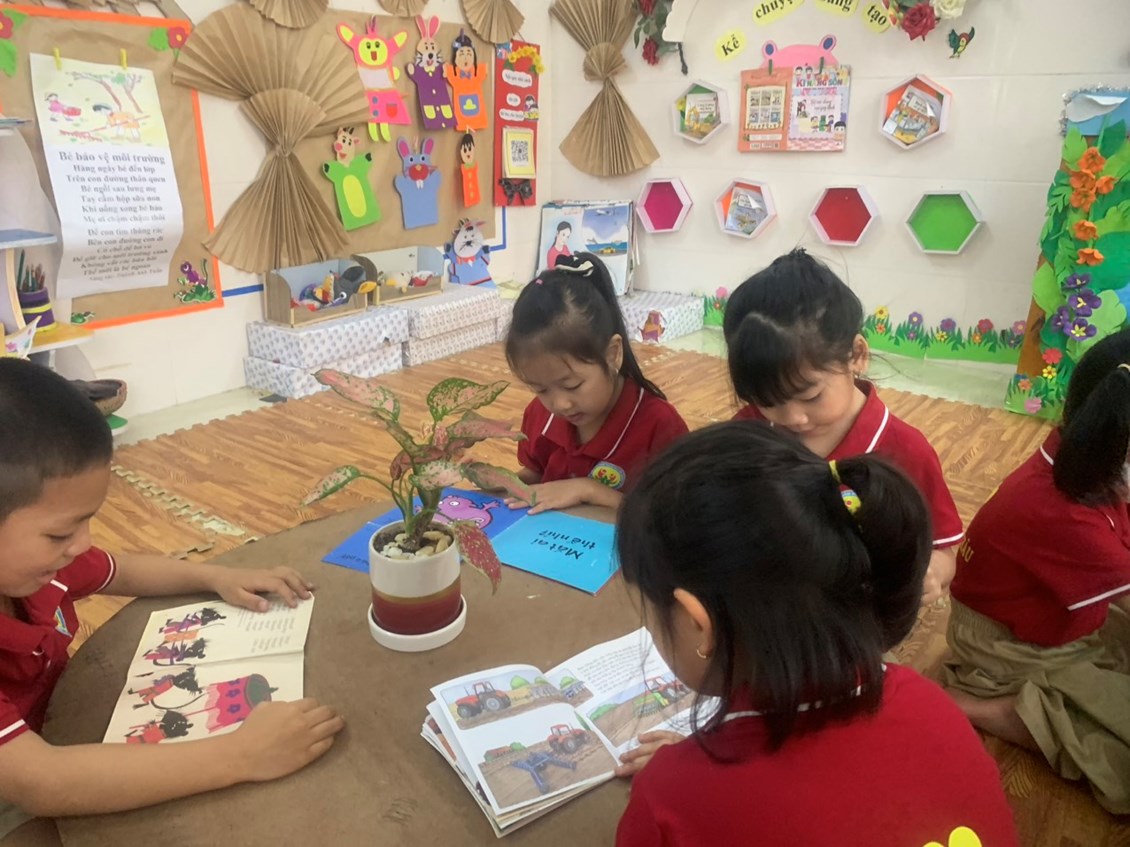 Nhận thức được tầm quan trọng đó trường Mầm non Hoàng Châu đã thực hiện những hoạt động nhằm khuyến khích và phát triển phong trào đọc sách cho trẻ. Thay đổi hình thức đọc sách bằng việc cho trẻ quét mã QR để cùng tìm kiếm các câu chuyện và bài thơ qua đường link nâng cao chất lượng thực hiện chuyển đổi trong công tác chăm sóc, giáo dục trẻ