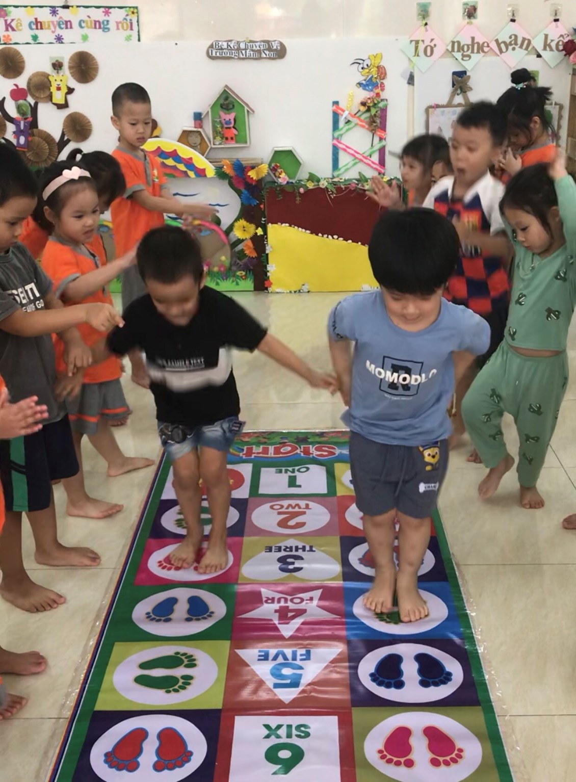 Hôm nay, các bé lớp 4 tuổi cùng nhau tham gia một trò chơi vô cùng thú vị. Sau đây là các hình ảnh về hoạt động