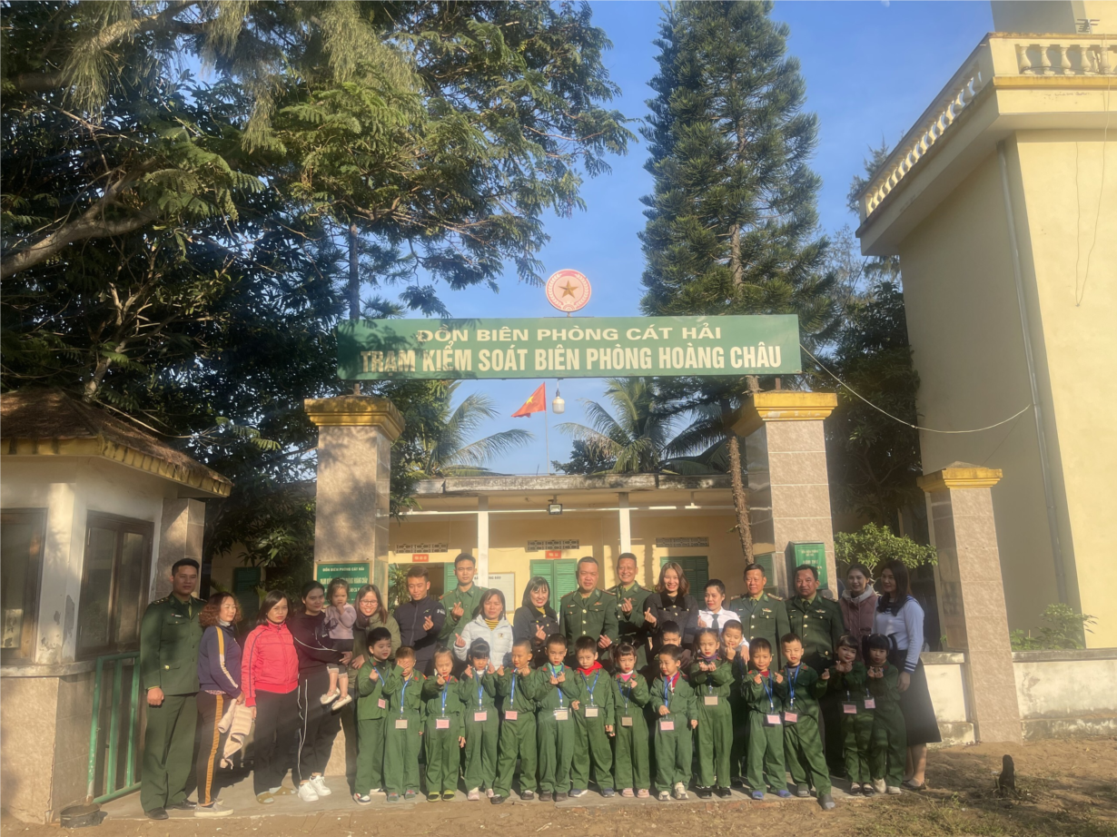 Chiều ngày 21/12/2023, Trường Mầm non Hoàng Châu tổ chức cho các bé tham quan, trải nghiệm Trạm kiểm soát Biên phòng Hoàng Châu. Trong buổi trải nghiệm các bé được tham quan các phòng làm việc, ăn, ngủ, nơi tăng gia sản xuất các vật nuôi, cây trồng. Cùng tìm hiểu về công việc của các chú bộ đội, nghe giới thiệu quân tư trang và được tham gia tập đội hình đội ngũ và đồng diễn cùng các chú bộ đội giúp các con thể hiện lòng biết ơn đến các chú bộ đội làm nhiệm vụ cao cả thiêng liêng giữ gìn và bảo vệ Tổ quốc. Cảm ơn các bậc phụ huynh đã đồng hành cùng nhà trường tổ chức thành công hoạt động trải nghiệm. Xin trân trọng cảm ơn sự đón tiếp nồng nhiệt của các cán bộ, chiến sĩ trạm Biên phòng Hoàng Châu.Nhân ngày Thành lập Quân đội nhân dân Việt Nam 22/12 xin gửi tới các đồng chí những lời chúc mừng tốt đẹp nhất. Chúc các đồng chí luôn mạnh khỏe, công tác tốt, hoàn thành xuất sắc mọi nhiệm vụ của Đảng và nhà nước giao phó.
