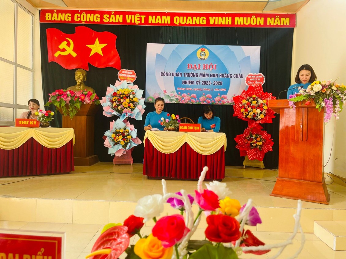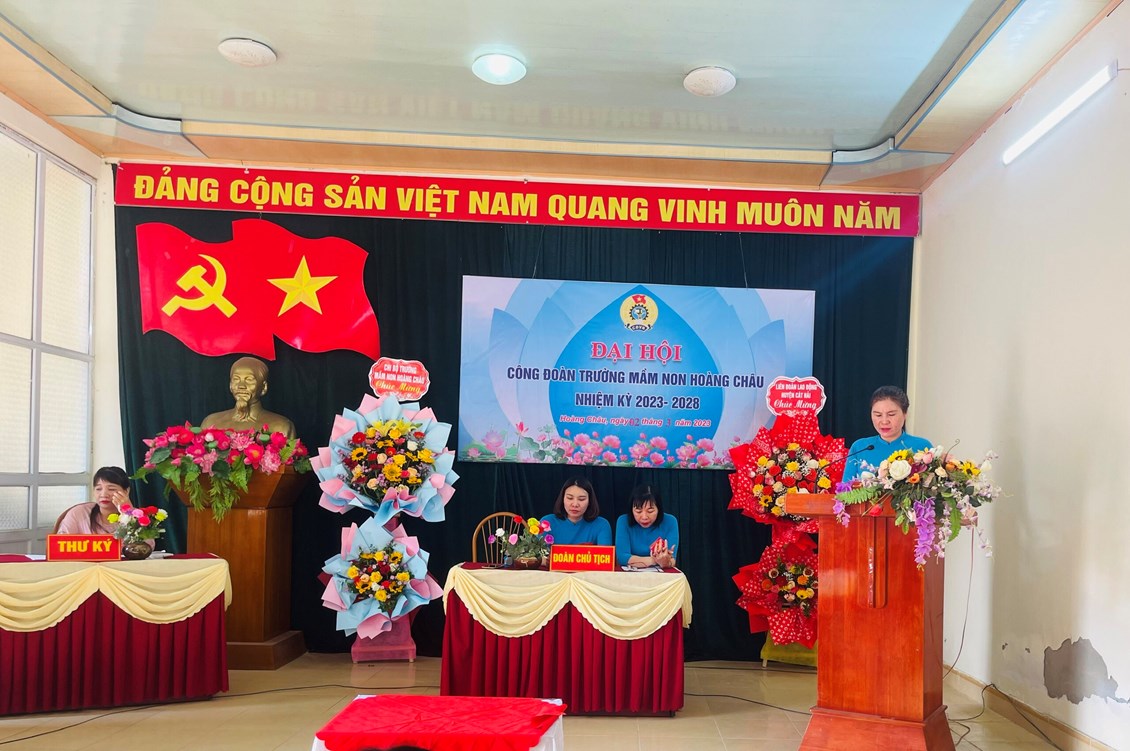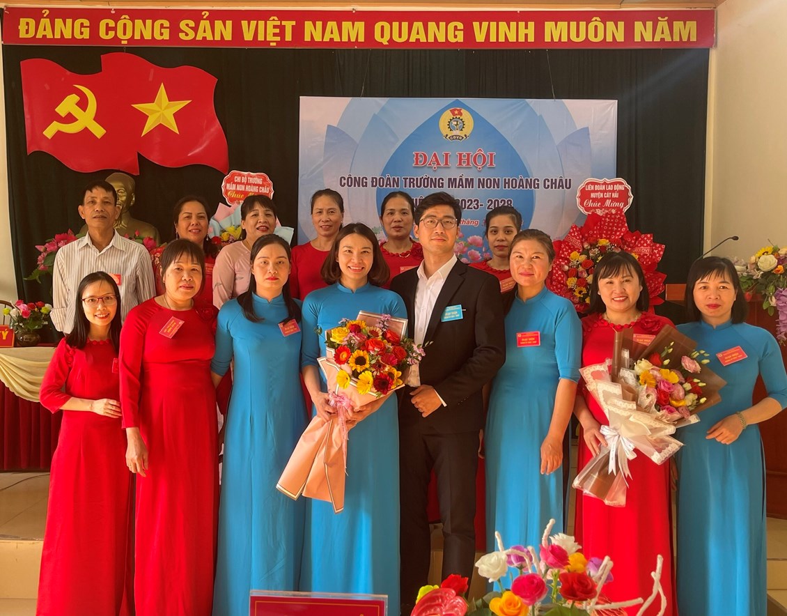 Về dự và chỉ đạo Đại hội có đồng chí Hoàng Văn Thành- Phó chủ tịch liên đoàn lao động huyện Cát Hải. Đồng chí Vũ Tùng Lâm- chuyên viên LĐLĐ huyện. Đồng chí Hoàng Thị Mai – Bí thư chi bộ, hiệu trưởng nhà trường và đông đủ đoàn viên Công Đoàn trường mầm non Hoàng Châu