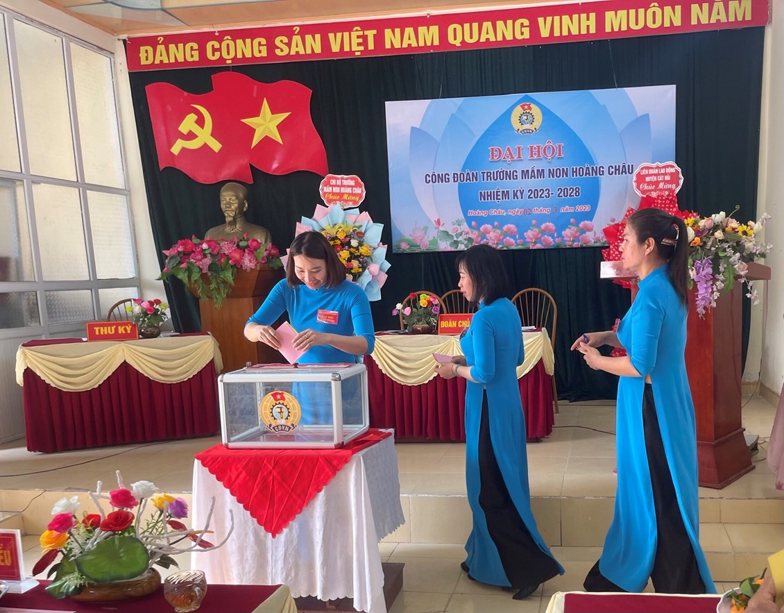 Đại hội đã bầu 03 đồng chí vào Ban Chấp hành Công đoàn nhiệm kỳ 2023-2028, 1 đồng chí làm chủ tịch công đoàn. Đại hội cũng đã tiến hành bỏ phiếu, bầu đại biểu đi dự Đại hội LĐLĐ huyện Cát Hải lần thứ XI, nhiệm kỳ 2023-2028