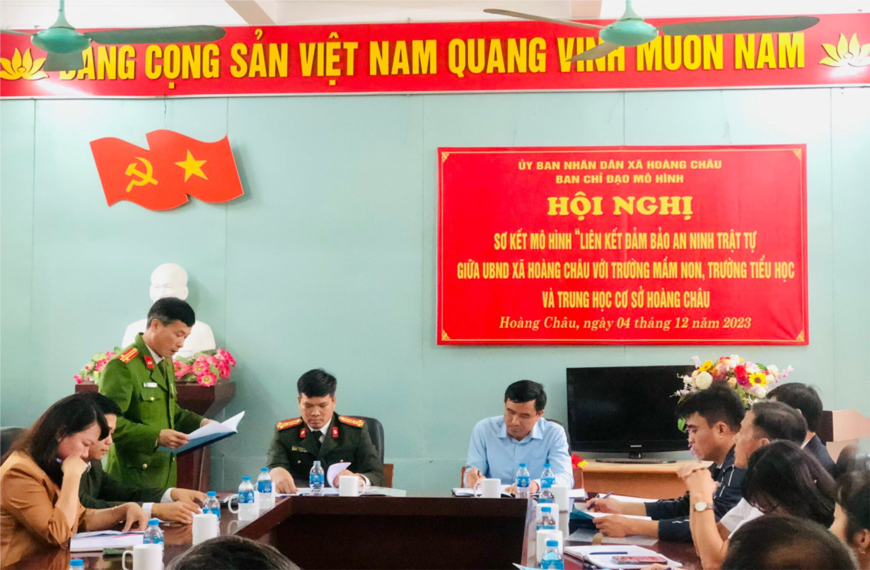 Hội nghị sơ kết Mô hình “Liên kết đảm bảo an ninh trật tự giữa UBND xã Hoàng Châu với Trường Mầm non, Trường Tiểu học và trung học cơ sở Hoàng Châu.