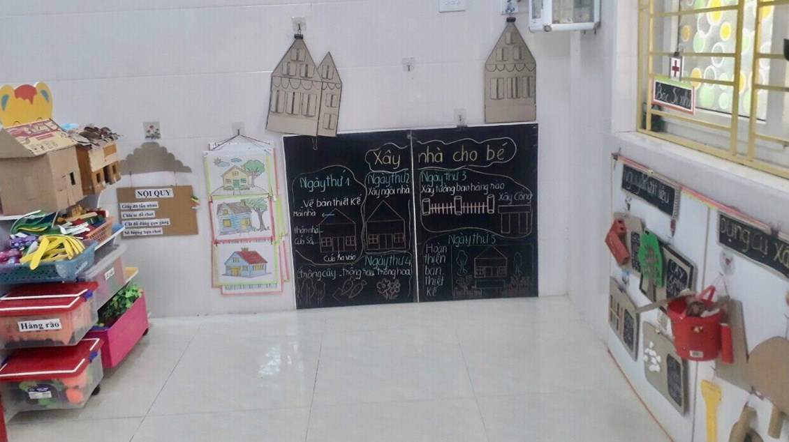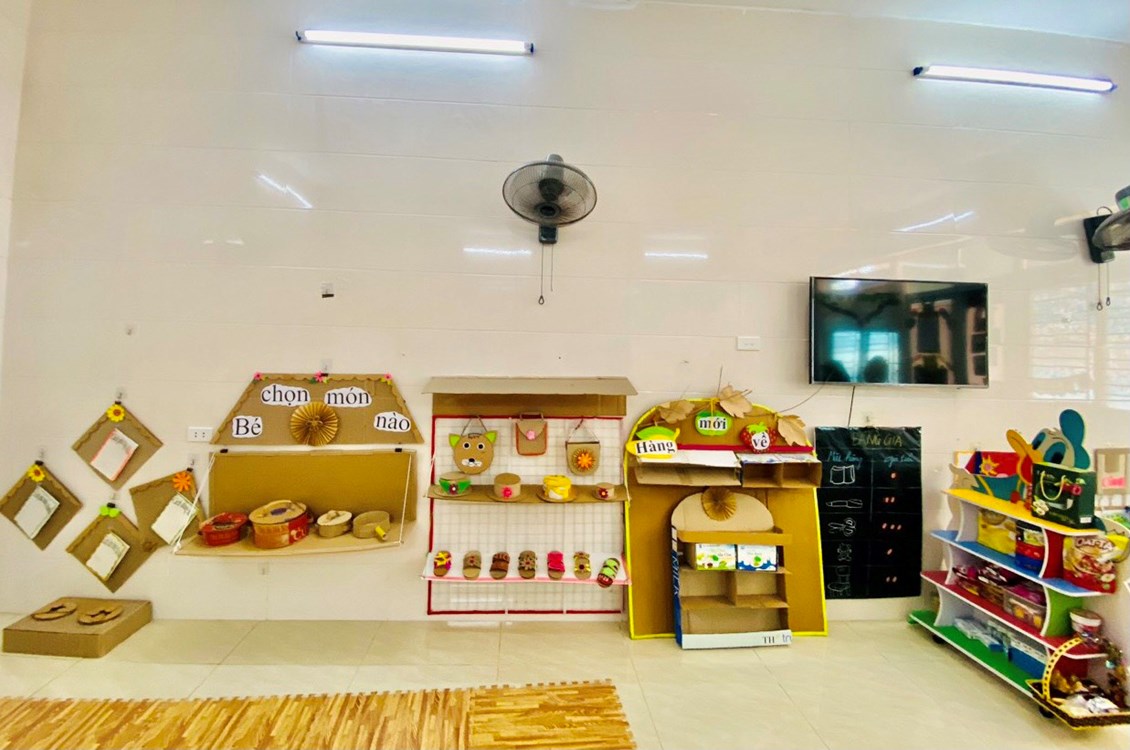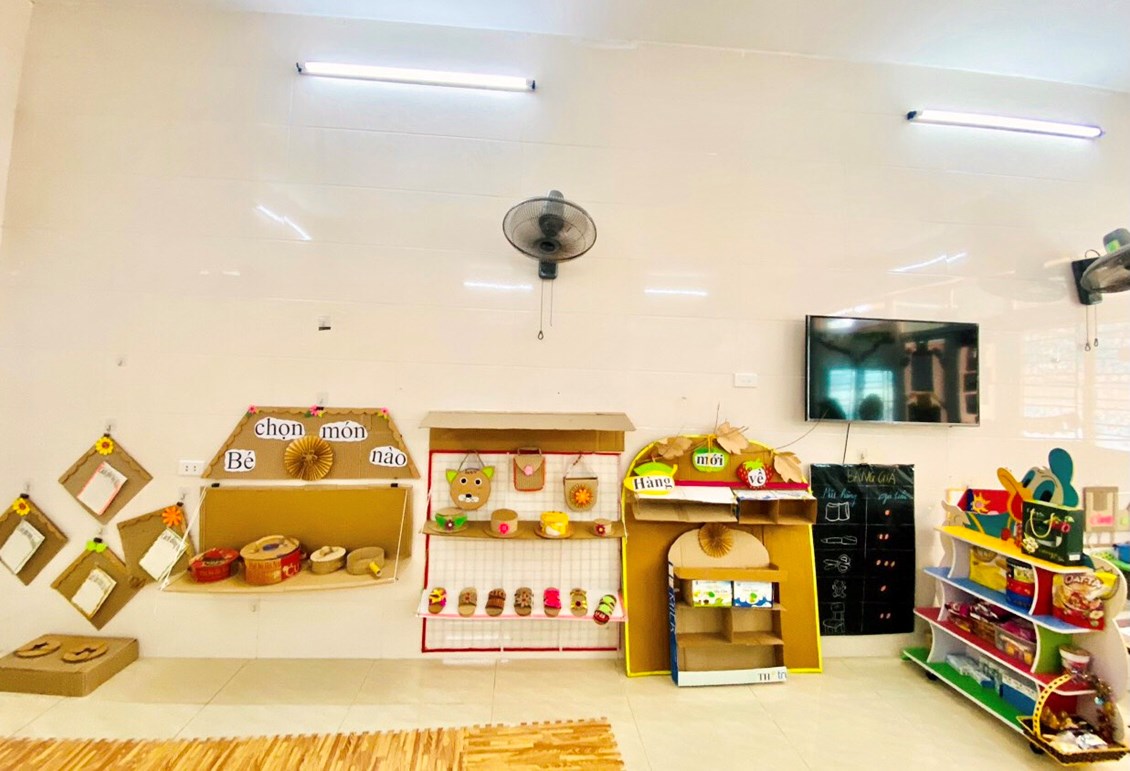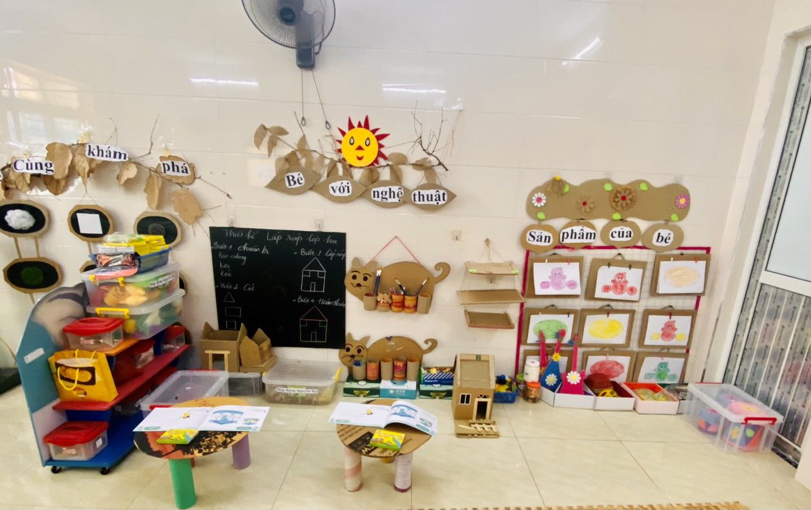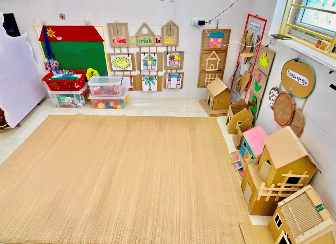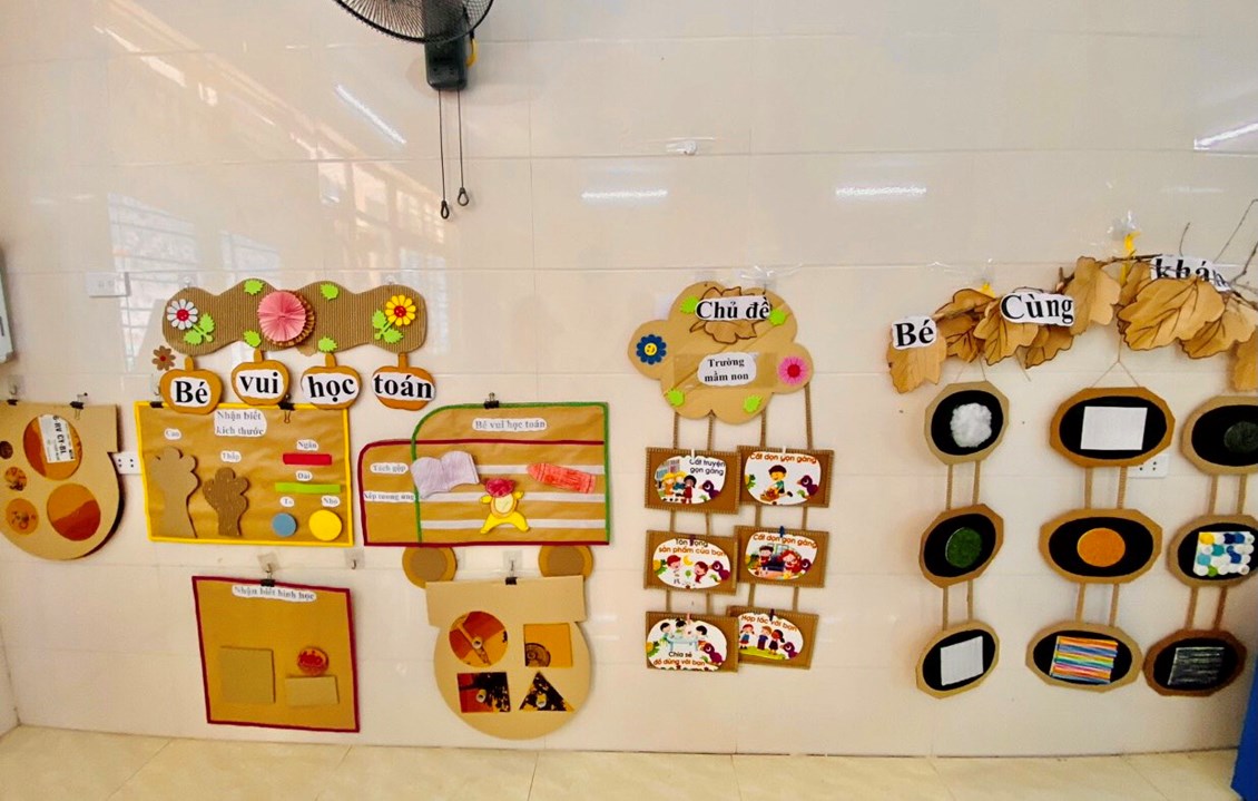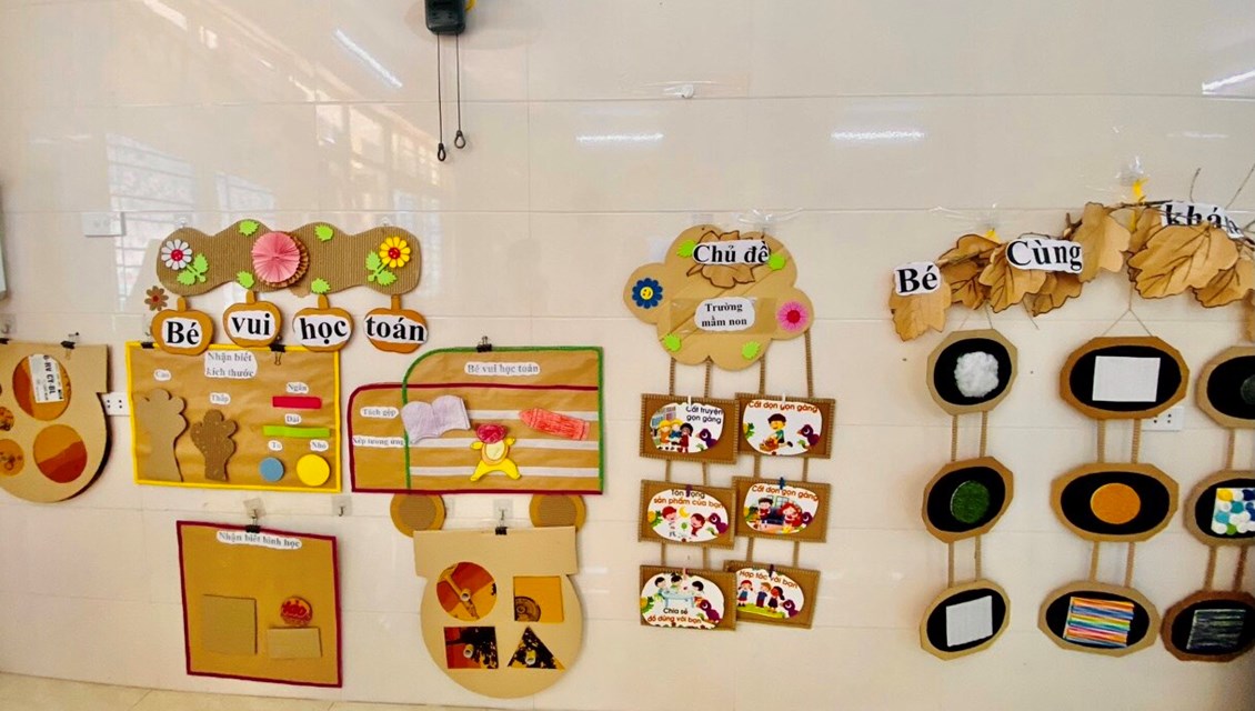 “Trang bị, sắp xếp sử dụng CSVC, thiết bị đồ dùng chăm sóc giáo dục trẻ theo quan điểm giáo dục lấy trẻ làm trung tâm” năm học 2023-2024. Với mục tiêu xây dựng và sử dụng môi trường mở vào chương trình giáo dục mầm non nhằm đáp ứng yêu cầu đổi mới của giáo dục các cô và các bé đã tích cực xây dựng môi trường giáo dục hạnh phúc, thân thiện qua việc lựa chọn các nguyên học liệu địa phương,