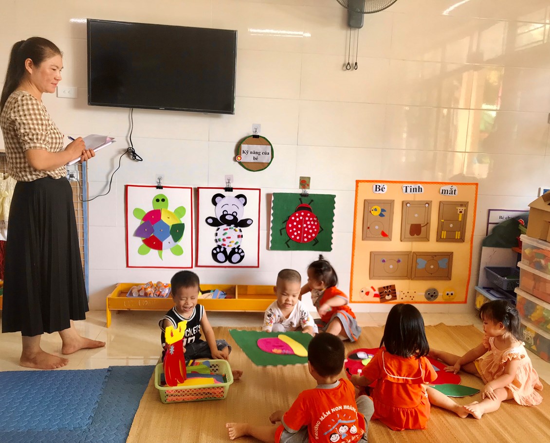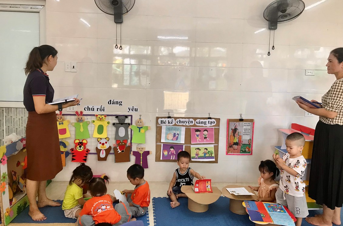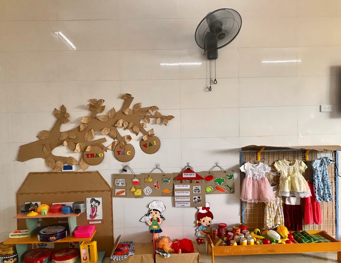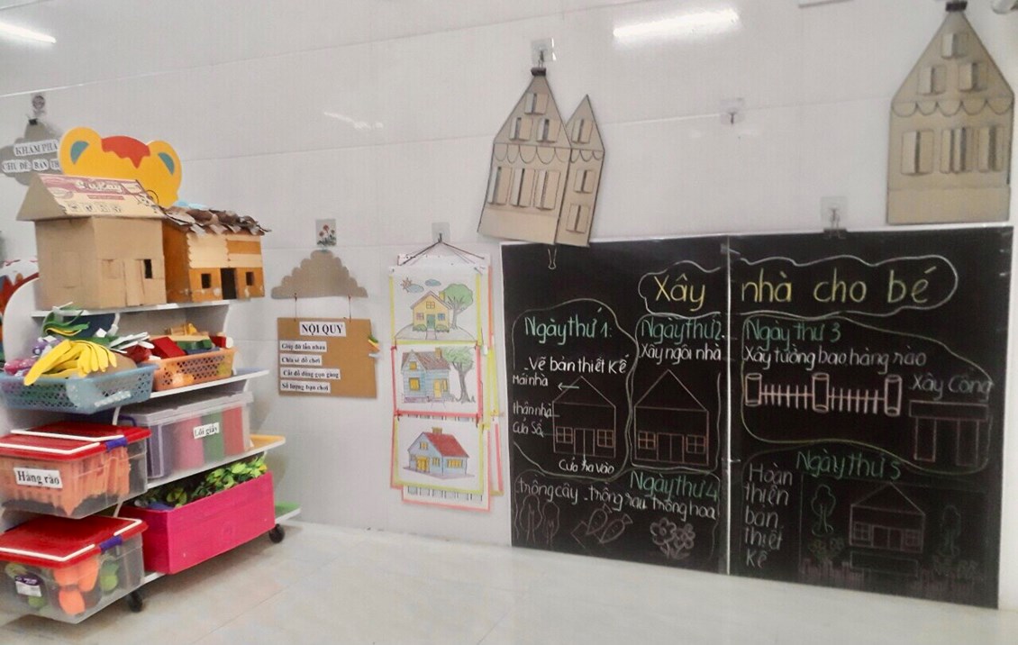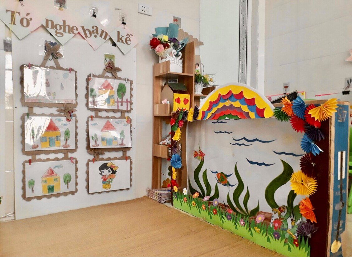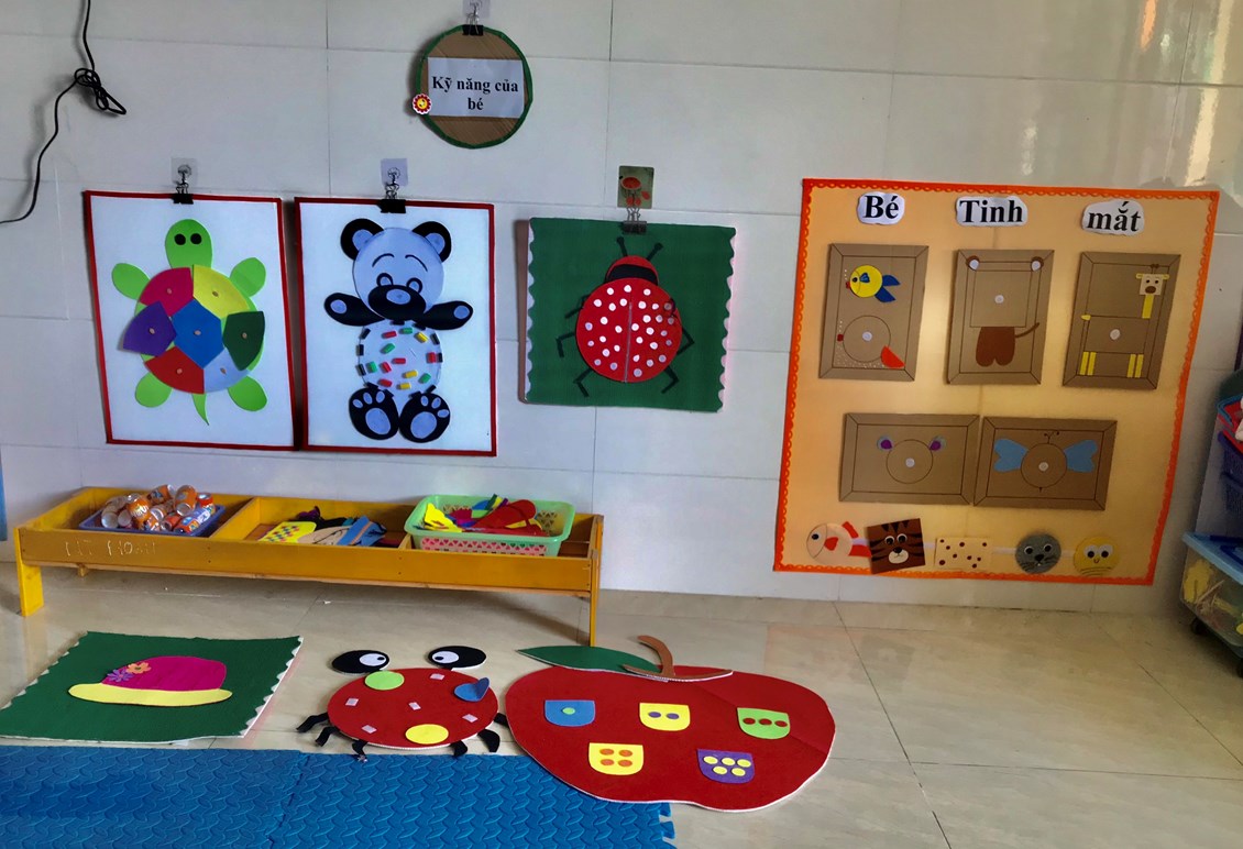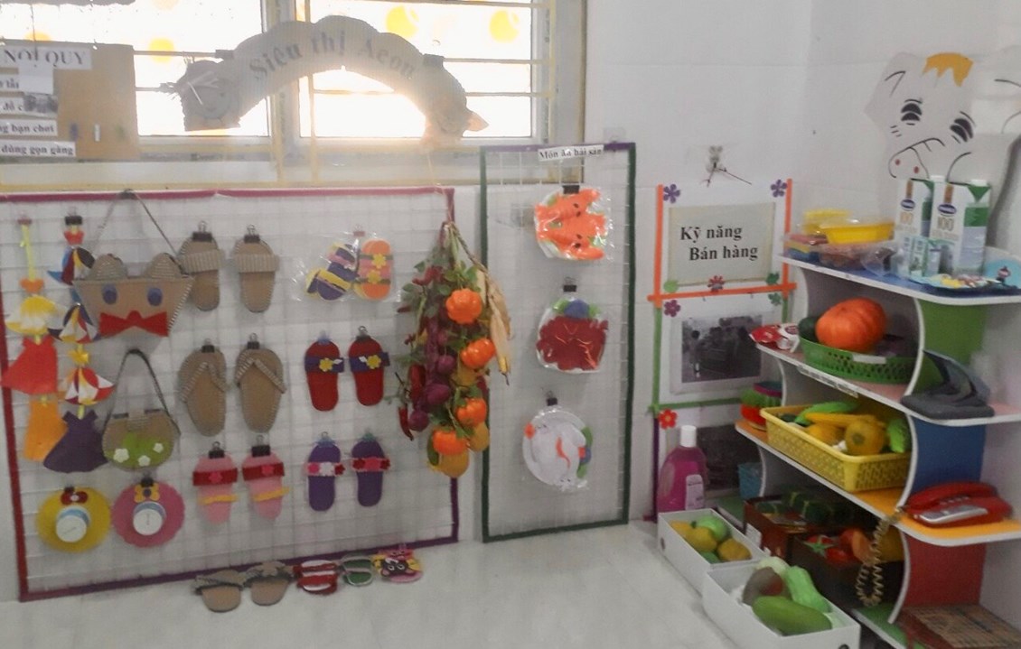 “Trang bị, sắp xếp sử dụng CSVC, thiết bị đồ dùng chăm sóc giáo dục trẻ theo quan điểm giáo dục lấy trẻ làm trung tâm” năm học 2023-2024. Với mục tiêu xây dựng và sử dụng môi trường mở vào chương trình giáo dục mầm non nhằm đáp ứng yêu cầu đổi mới của giáo dục các cô và các bé đã tích cực xây dựng môi trường giáo dục hạnh phúc, thân thiện qua việc lựa chọn các nguyên học liệu địa phương,