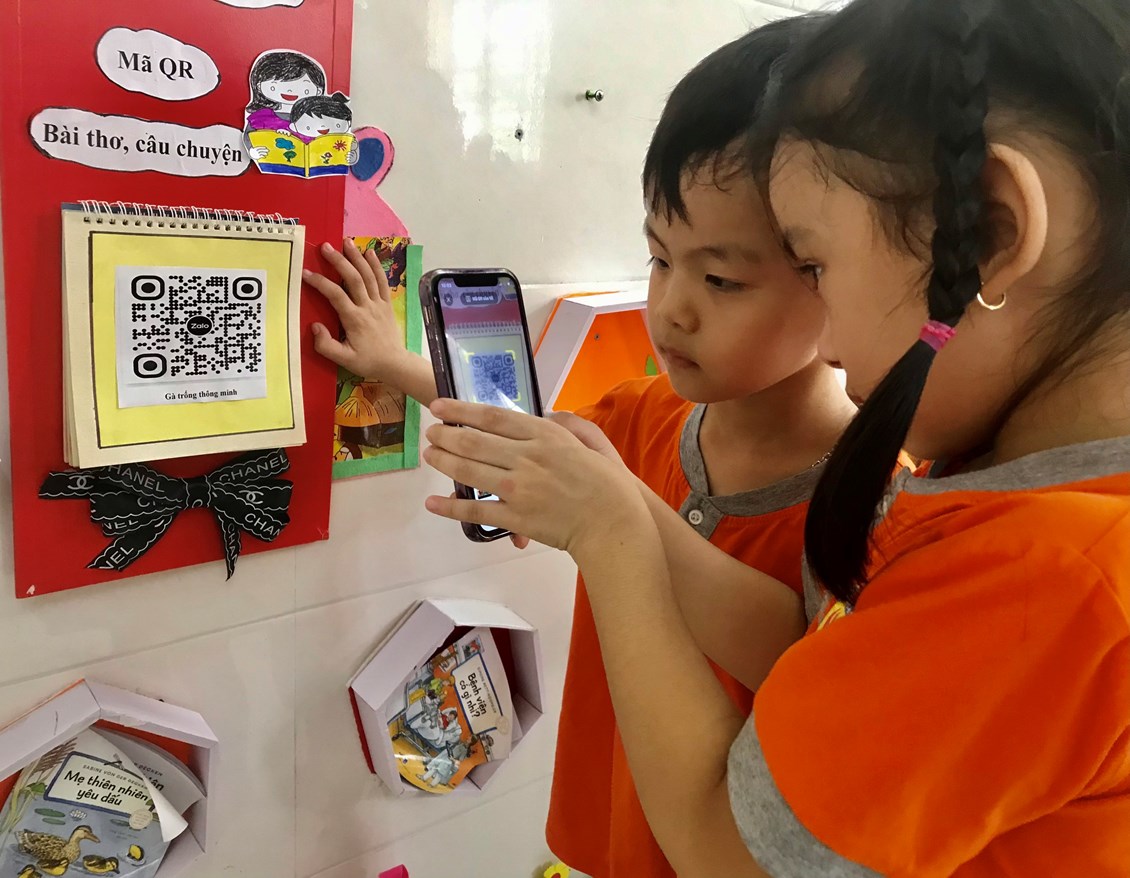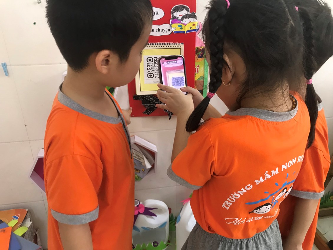ứng dụng chuyển đổi số vào các góc chơi giúp trẻ được khám phá, thực hành, trải nghiệm với các chủ đề mới nâng cao chất lượng và hiệu quả hoạt động cho trẻ đúng với phương châm giáo dục của nhà trường “Bé vui khỏe- Cô hạnh phúc”